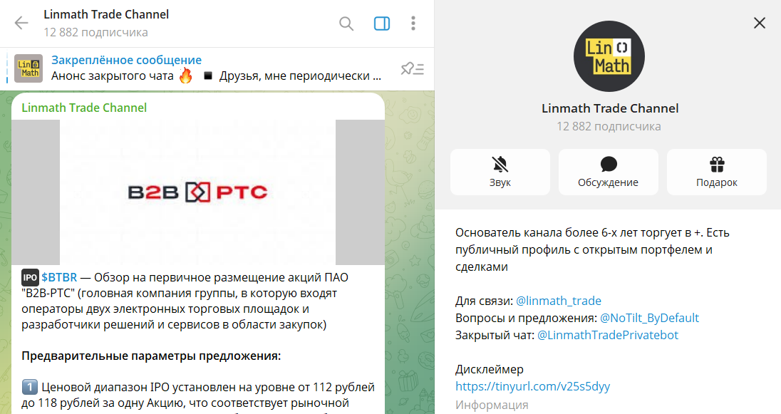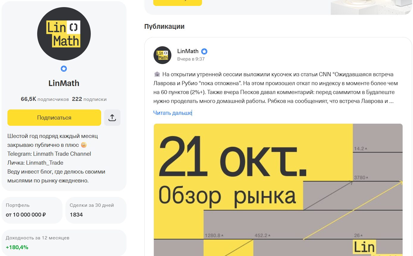Проект Linmath Trade Channel в Telegram посвящен идеям для торговли на бирже. Автор делится обзорами рынка и разборами эмитентов. Акцент сделан на «системный» подход и стратегии. Часть материалов публикуется бесплатно и регулярно. Для более глубокого контента есть закрытый формат. В целом канал позиционируется как инвестиционный блог по фондовому рынку.