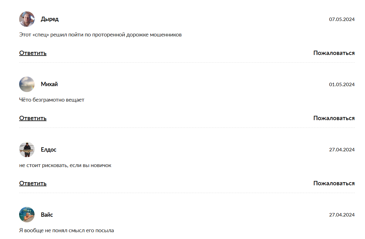 - отрицательные отзывы о трейдере Петре Краеве на независимых площадках, при этом в собственных группах только хорошие отклики.