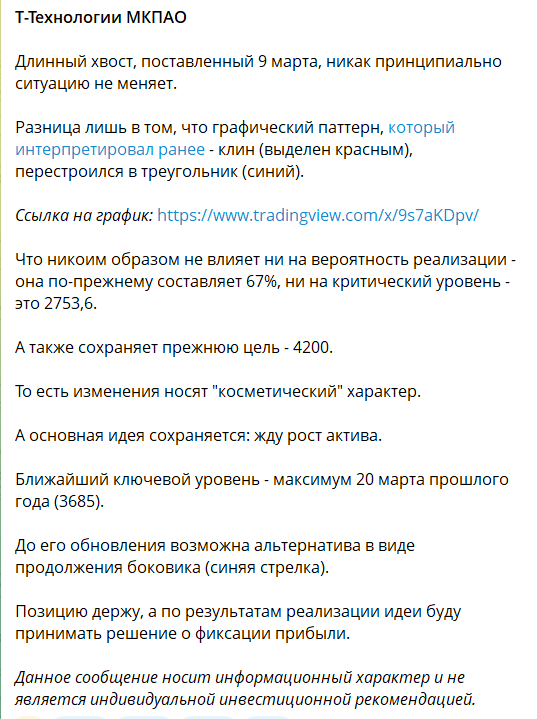 - Telegram +b1rzyS0pXeYyZjky: регулярные посты с разбором рынка, отдельных бумаг, иногда – с графиками/ссылками на TradingView, а также анонсы эфиров и продуктов.