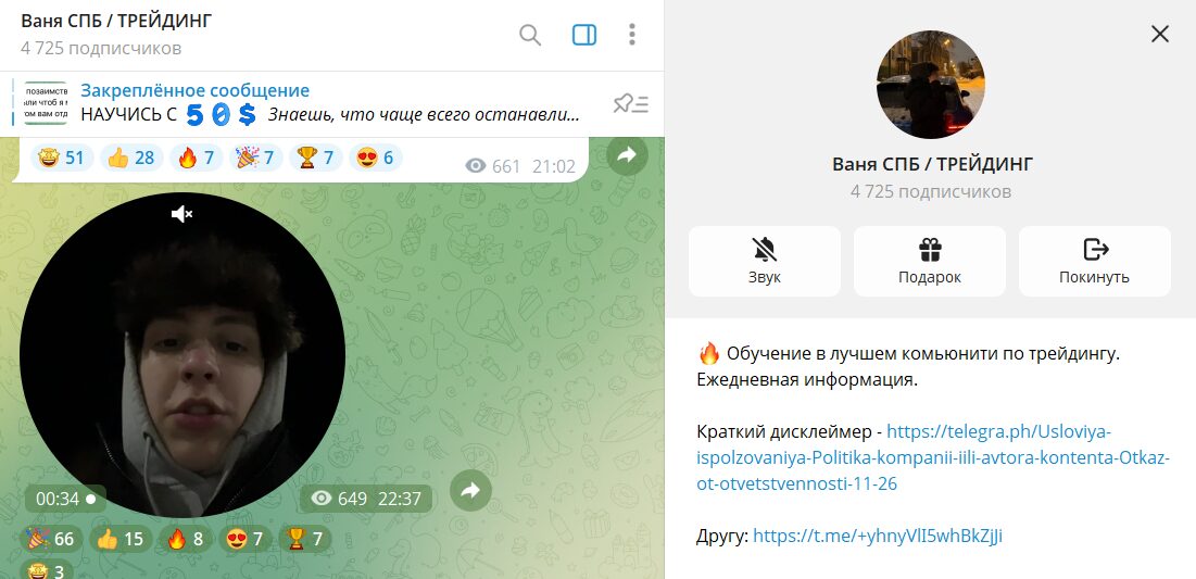 Владелец проекта, который заявляет, что ему около 20 лет и он зарабатывает на бинарных опционах. В описаниях упор делается на «стабильность», легкость заработка и свободный образ жизни. При этом в открытой части канала нет доказательств уровня компетенций: ни верифицированной статистики, ни подтвержденных торговых результатов на дистанции. Основной «продукт» автора – доступ к приватному чату, где и выдаются торговые рекомендации.