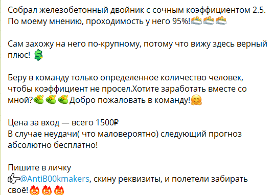 При этом прямых ссылок на букмекеров в описании и постах может не быть, но коммерческая модель строится именно вокруг продажи ставок.