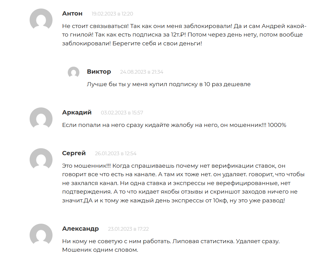 В группе выкладываются отчеты о выигрышах экспрессов и короткие статусы по бесплатным прогнозам, но представленные данные не верифицированными. В ленте также публикуются положительные отзывы о платных услугах, однако по внешним признакам часть из них может быть сфабрикована. На тематических ресурсах уже стали появляться жалобы не только об этом проекте, также многочисленные негативные отклики на тематических сайтах выложены о другом канале автора: «ProBOT | Сигналы на бейсбол»: