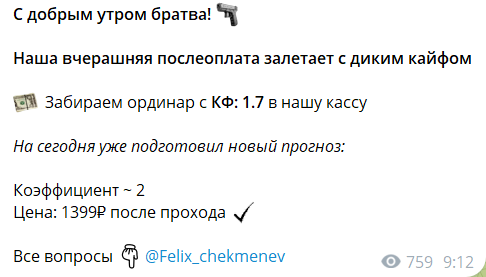 - каппер Феликс Андреевич в телеграме: @Felix_chekmenev