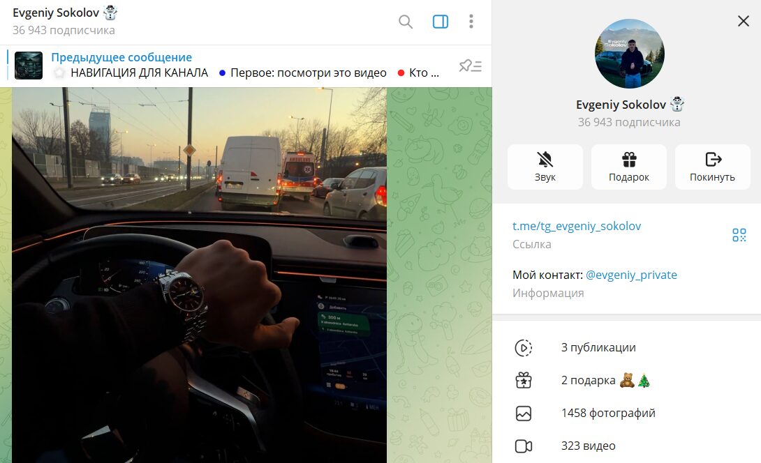 Фотография трейдера Евгения Соколова с канала телеграм