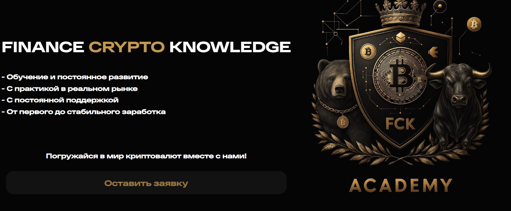 В материалах проекта Finance Crypto Knowledge (fck-academy com) встречаются обещания «практики», «постоянной поддержки» и «стабильного заработка». Но без структуры курса и условий покупки такие заявления остаются рекламными формулировками.