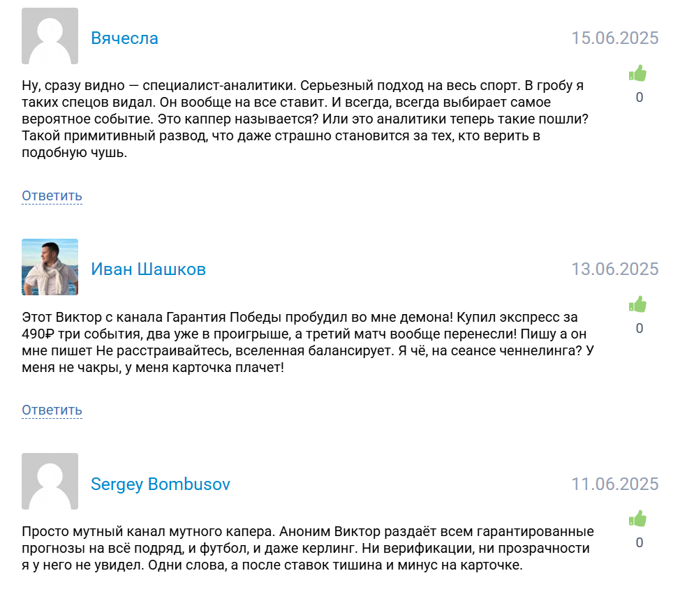 Отзывы о работе Виктора разделены на два лагеря. В самом блоге публикуются исключительно положительные скриншоты переписок с благодарными клиентами, демонстрирующими выигрышные купоны. На независимых тематических форумах и сайтах-отзовиках можно встретить более сдержанные и критические мнения. Сплошной негатив и жалобы на слитые банки: