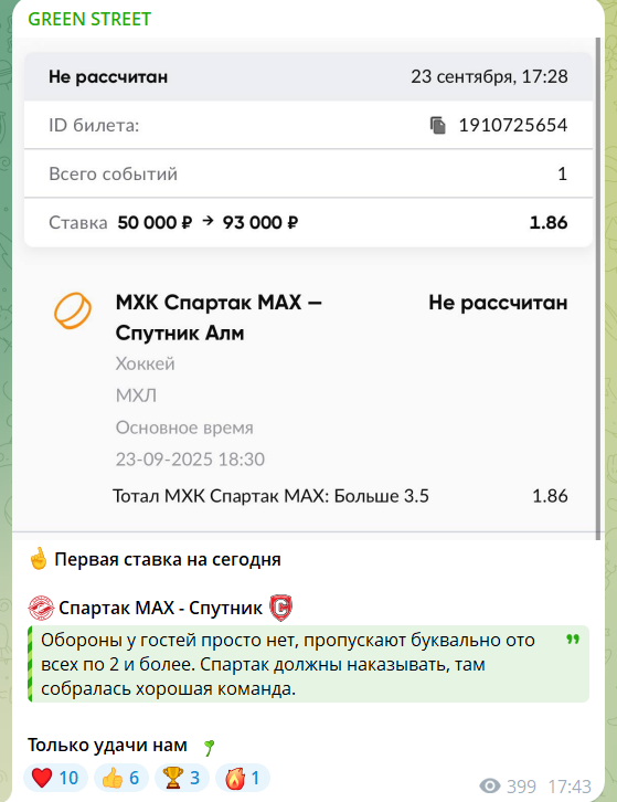 Причем ставят не только на хоккей, но и футбол. Причем вначале своего пути на один исход аналитик канала GREEN STREET заигрывал 500-1000 рублей, а потом резко перешел на 20000-50000 рублей (быстрее всего игра ведется на демо). Участники ресурса не получают советов по распределению банка. Сам беттер тоже не придерживается какой-либо стратегии, причем часто выдает попанские экспрессы из низких коэффициентов. Периодически появляется статистика и отзывы.
