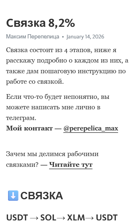 Владелец утверждает, что сам начал с дохода в 50 тыс. рублей в месяц, а теперь зарабатывает свыше 4 млн. Однако схема подразумевает работу с любыми суммами. Материалы в ленте ориентированы на привлечение пользователей через личные сообщения и бота, где даются реферальные ссылки на биржи.