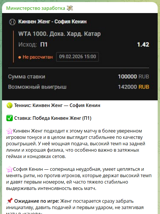 Верифицированной статистики на канале в телеграмме Министерство заработка нет: не ведется прозрачный отчет по всем ставкам с учетом проигрышей, ROI и просадок. Частая практика в сомнительных проектах – отмечать только плюсовые исходы, а неудачные удалять или не акцентировать, из-за чего у новичка складывается ложное ощущение высокой проходимости.