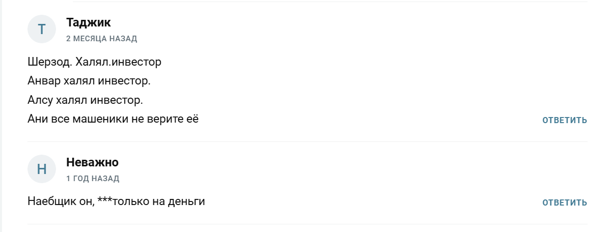 Таджикский создатель и руководитель портала (с его слов) торгует криптовалютой. При этом торговые рекомендации вообще не предусмотрены. Трейдер делает предложения по вкладам на взаимовыгодных условиях. Статистика по торговым сессиям вообще не ведется, в ленте представлены скрины с переводами и отзывы благодарных клиентов, которые в указанный срок получили свою выплату.