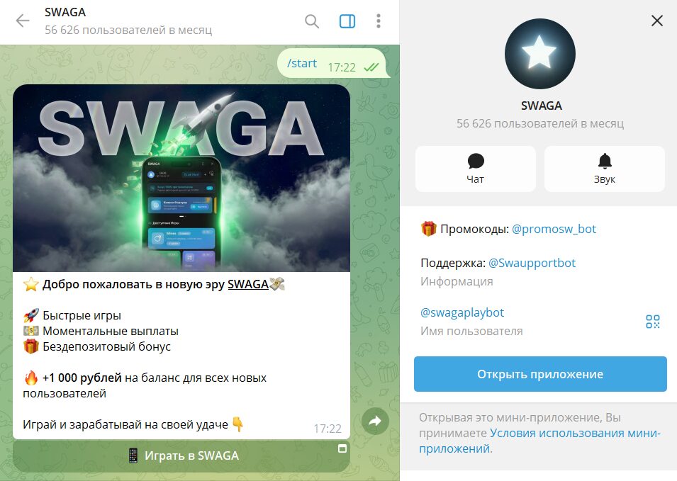 В Telegram появился игровой бот SWAGA (@swagaplaybot), который обещает выигрыши реальными рублями. Разработчики уверяют — достаточно кликать по экрану и получишь деньги. Звучит заманчиво, но судя по отзывам и обзорам, история типичная для мошеннических схем. По данным различных антискам-порталов, проект имеет все признаки развода. Выиграть в играх легко, а вот вывести деньги пользователям не удаётся. В обзорах описывается цепочка требований — одно за другим, платеж за платежом. По итогу не ни у кого не получилось вернуть даже вложенные средства.