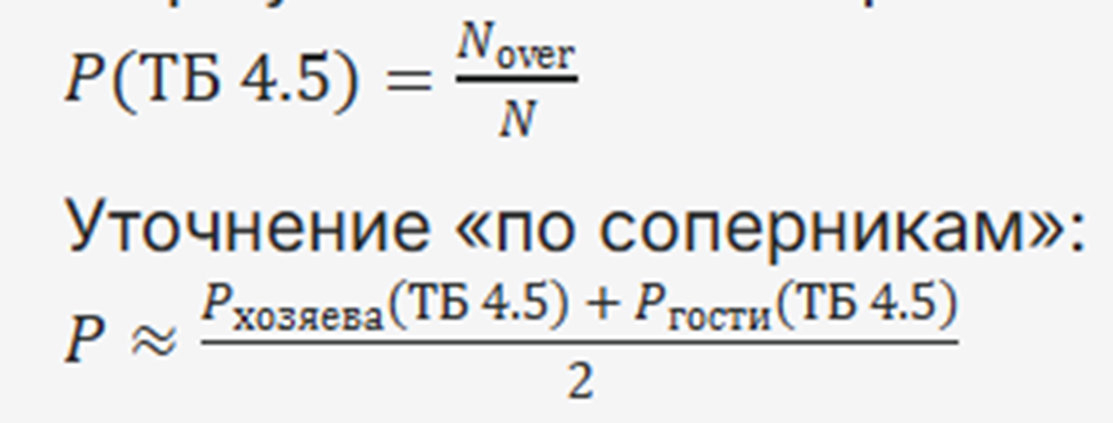 Расчет вероятности прохода тотала больше 4,5 по статистике и моделям